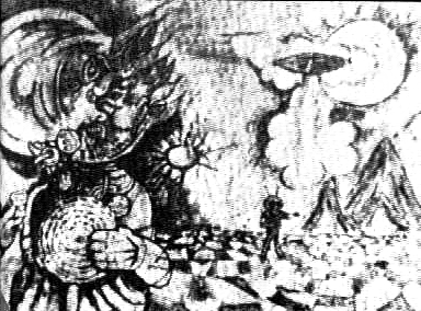 COM DUAS ANTENAS, QUE PERMANECE DEBAIXO DO OVNI QUE LANÇA UM NUVEM
